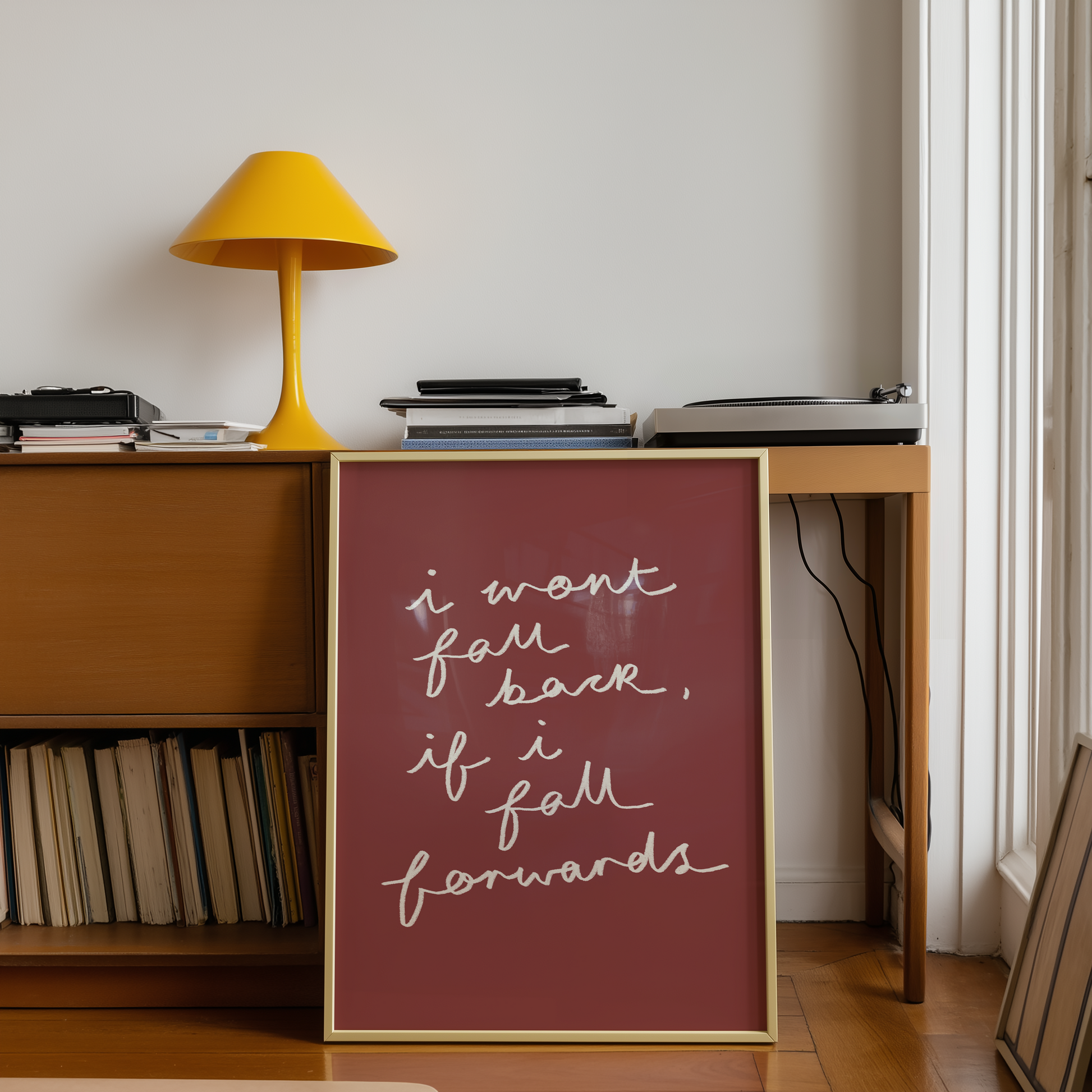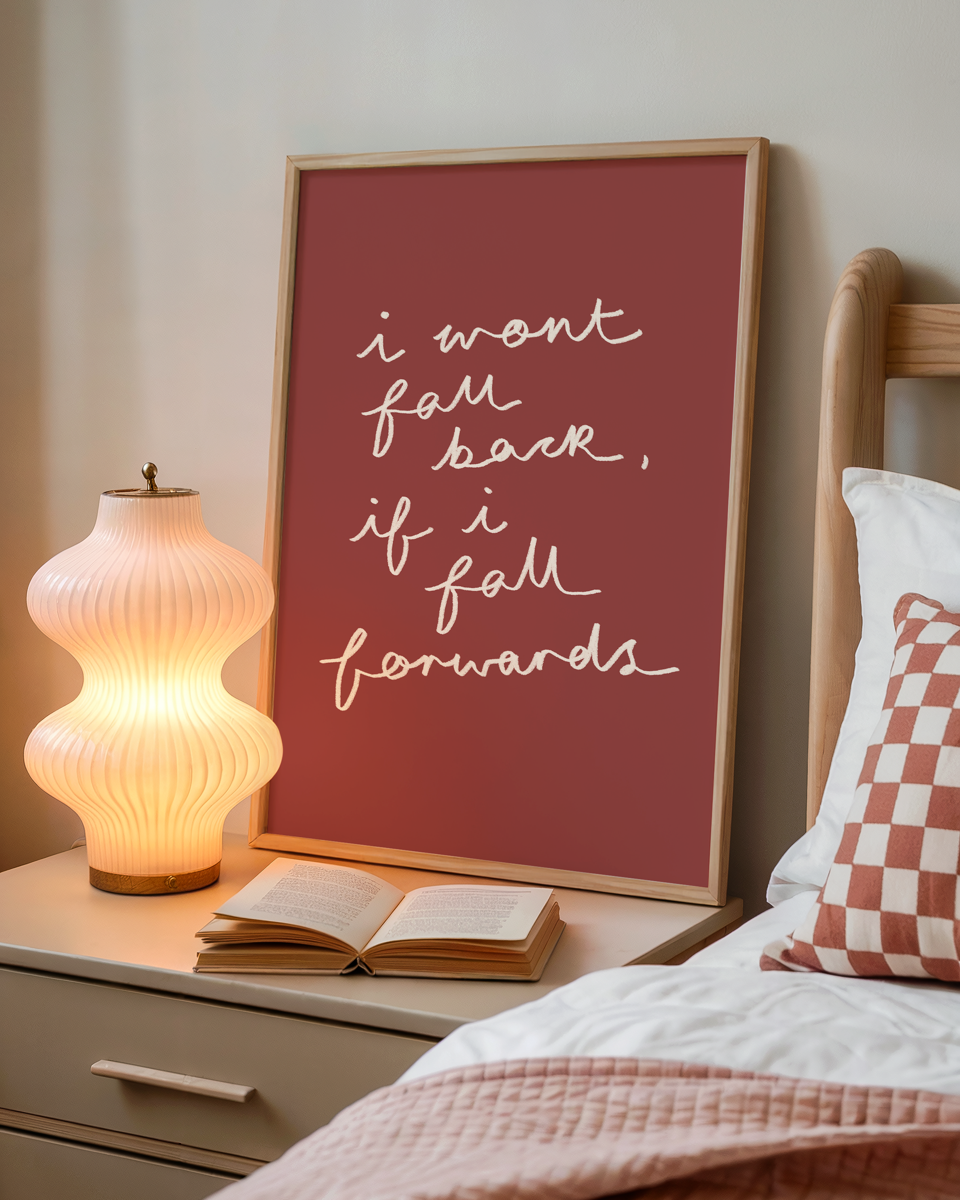 'I Won't Fall Back, If I Fall Forward' wall print - illustration by me! One for the Olivia Dean lovers! Inspired her new album and the song everyone has been resonating with - Baby Steps! Part of my new collection of simple, handwritten prints to complement my illustrated collection! <3